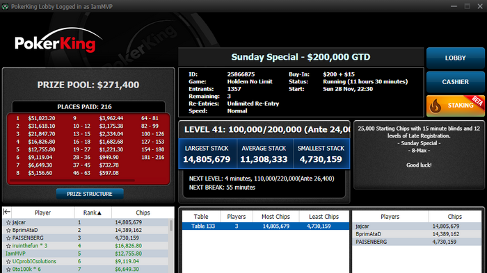 Gleb Tremzin рассказал, что на PokerKing играть долго, зато выгодно. Доказательство — два 5-х места в килополях воскресников. В турнире за $100 Глеб заработал $4,838, а в турнире за $200 — $12,755.