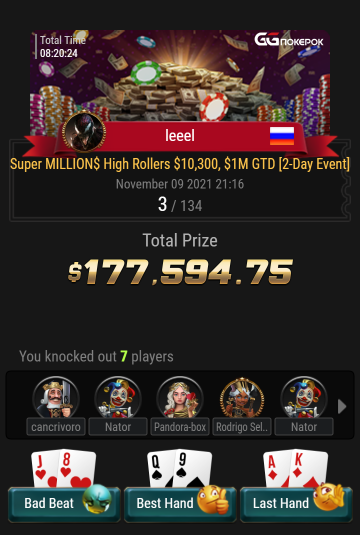Наш хайроллер Алекс Шепель в начале ноября выиграл $177,594, заняв третье место в одном из самых престижных и сложных онлайн-турниров Super MILLION$ с бай-ином $10K на GGПокерок.