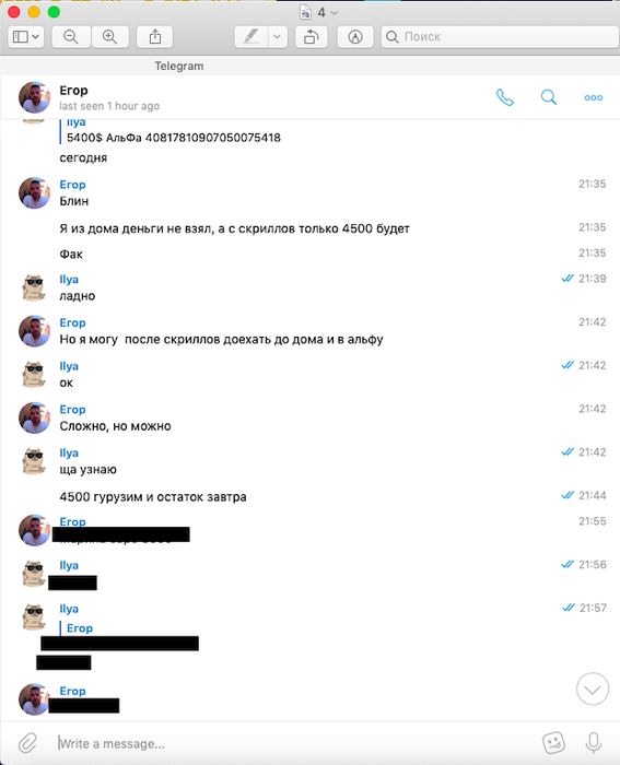 Итак, на основании версий переписки в телеграми, мы выяснили, что мошенник есть(т.е. версия что кто то по ошибке дал/отправил неправильный реквизит исключена), и это либо тс либо Билли.