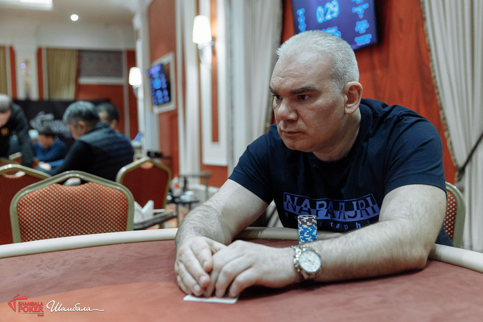 Эмоциональная раздача была сыграна сегодня, в которой определился чип-лидер. Сергею Терешкову ривером закрылось каре.
