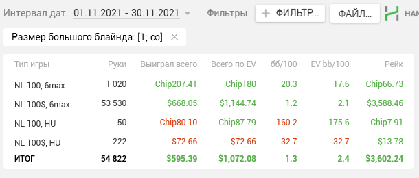 насчет красной - мне кажется, это нормально, что на нл100 она у тебя пошла в меньший минус. Там все же люди блефуют уже более менее. Не с оптимальной частотой, но сильно больше, чем на нл50. У меня красная на нл100 тоже «лучше», чем на нл50
