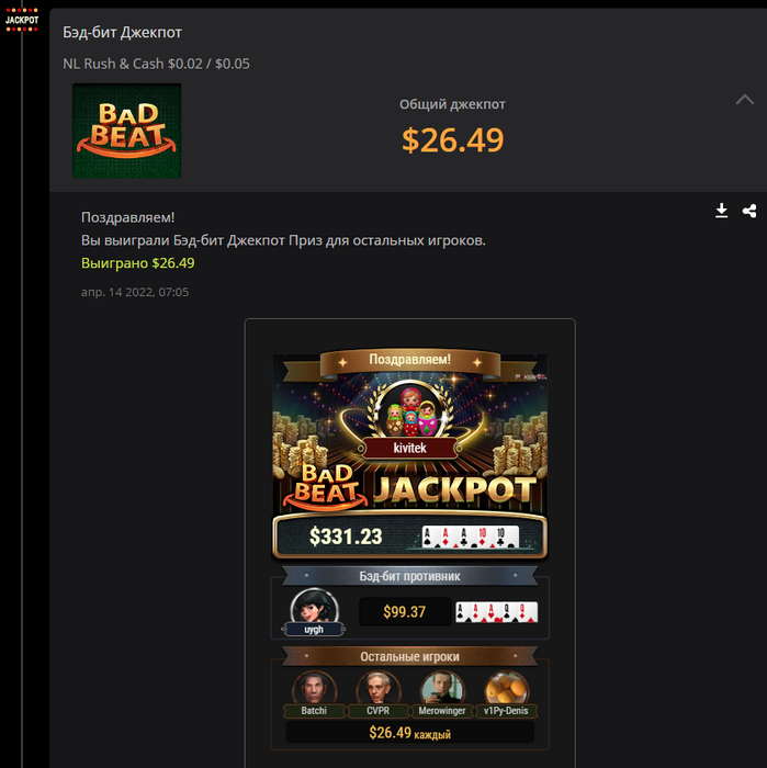 kivitek @ 15.04.22То чувство, когда первый раз засветился на покерном форуме из-за бэд-бита:)