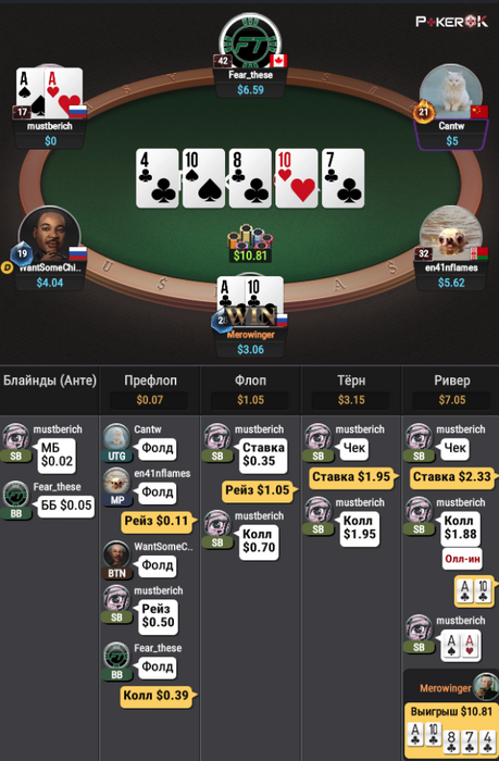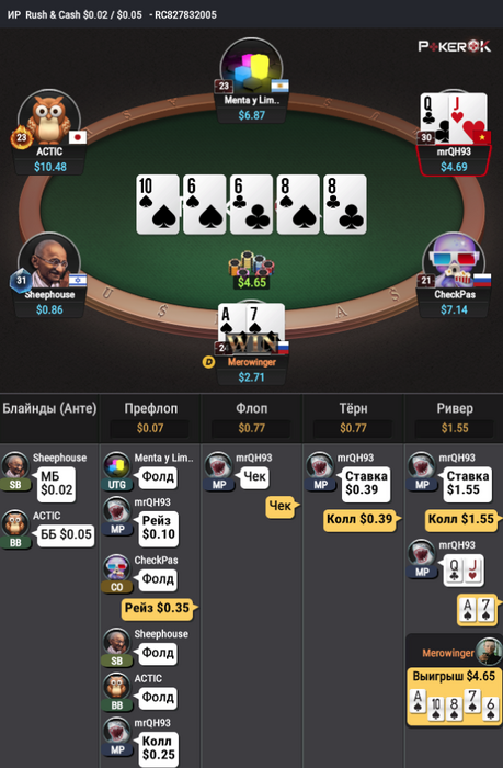 Видим, что у овер пар эквити очень мало для ставки на тёрне (на самом деле у них даже на рейз флопа не хватает эквити)