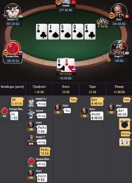 Pend @ 28.04.22В этом и проблема, чтоб по блефкетчеру овербеты не оч вскрывать на нл5, блефов мало от поляны мы тут увидим.