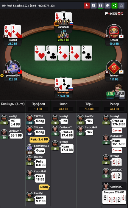mRedJohn @ 15.04.22Большинство рук с шдв типа сильных тузов, слабых ТП играется от чека.