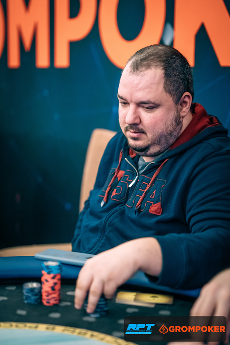 Понемногу Матус переманил значительную часть шашек турнира. Только что с блайнда на блайнд отправился выбивать Антона Худышина, сетке у которого оставалось 250,000.