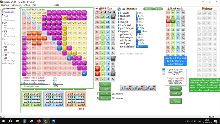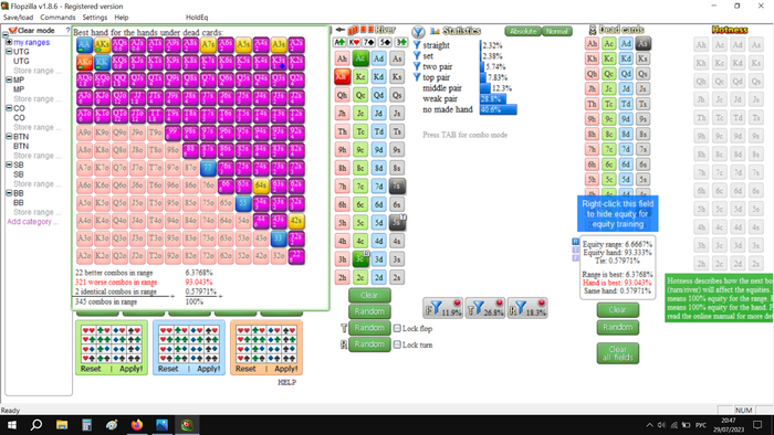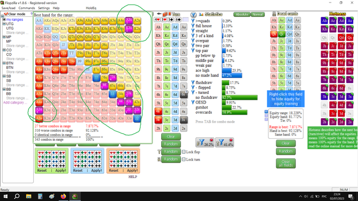 Gardeus @ 30.07.23Barmaley212, Я с любителями играю в основном фит-о-фолд. Не вижу никакого смысла пытаться разбираться их диапазоны, так так там может быть ВООБЩЕ(!!!) что угодно. Он может кольнут 43о на доске 2QJ отхлебнув пивка и вспомнив как на пляже было четыре девчонки с 3 размером груди (а у него как раз 43o)