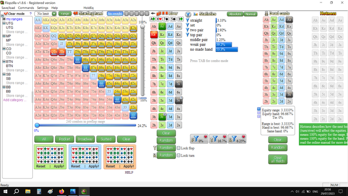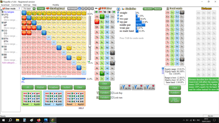 Он меня не много удивил, я думал увидеть JJ+ AQs+ AQo+ изредка сдесь вообще будет не закрывшиеся гатшоты