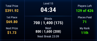 Больше играть мтт не буду, очень дисповое и мало вероятное без плотной загрузки что-то там иметь, но поле в 10 раз лучше кэша, но я умудрился из 5 туриков в 3 попасть в деньги, свин))