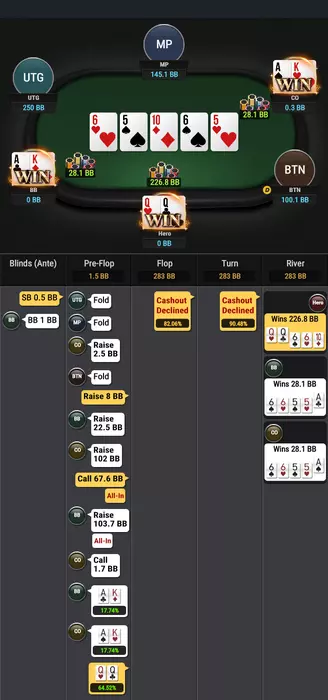 На ранауаты ты не как не можешь повлиять. А ошибки делали мои противники, а не я. А то что так по грязи стелили и не было шансов отскочить, часть игры. Хоть считаю что даже против каре двоек сыграл оптимально и выиграл, т.е проиграл от раздачи минимум и выиграл максимум по факту.