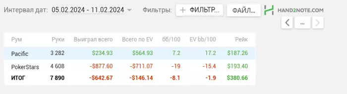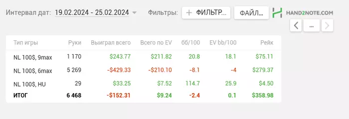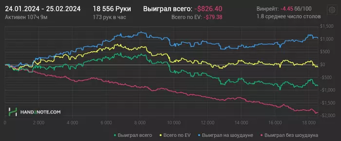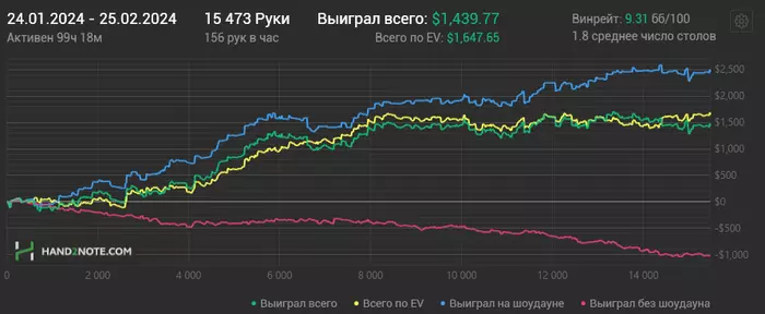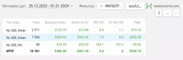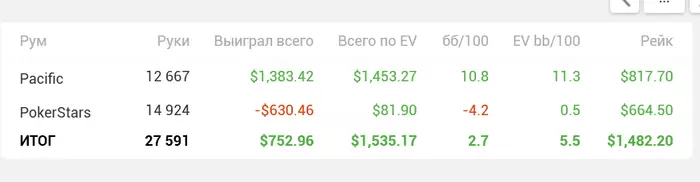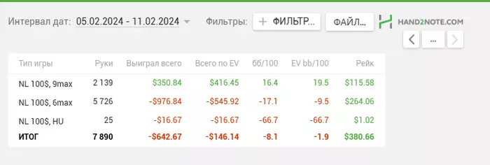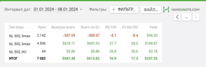 Несмотря на минусовую последнюю неделю у меня неплохо идет НЛ50 за последние 35К рук.
