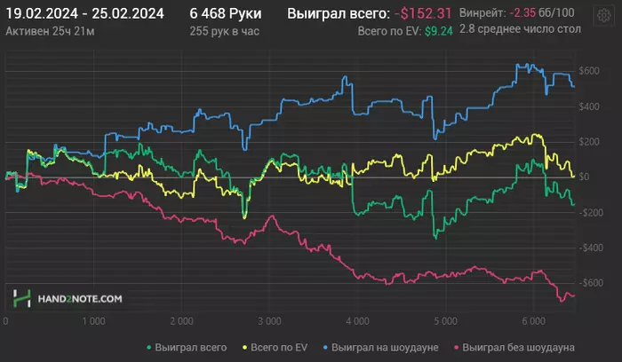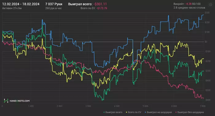 Особенно удручает красная (((( Ну как её поднять, я хз. Если резы в целом я думал будут хуже, то красная я был уверен будет в районе -5бб/100. То, что я увидел прям офигел. Мы в проекте как раз в среду на трене проходили игру по красной и разбирали игру ооп. У меня был лик с оверфолдами и недостаточными блефами на Ривере . Так вот, было чувство, что я играл эту неделю как бог по этим моментам. И блефовал и Ривер колил во многих ситуациях, где выкидывал раньше. А красная в такой опе. Капец в общем, я в тупике пока, если честно.