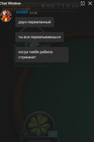 Давая инфу регам в чате, вы позволяете легко себя заэксплойтить. При этом оппонент неплохой рег, гриндит, мало ошибается, делает дисциплинированные фолды. Справится с эмоциями, цены ему не будет😅