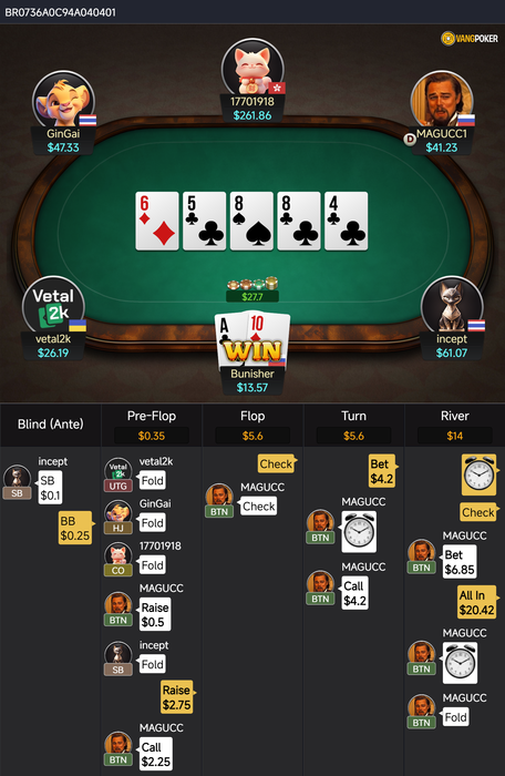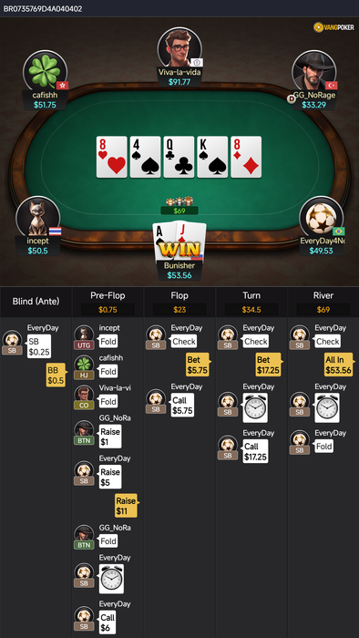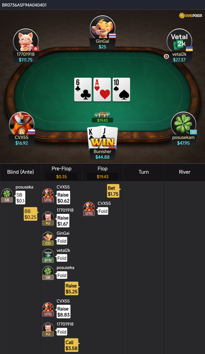 Bunisher, вопрос по раздаче с А10. Если бы оппонент запушил бы на твою ставку терн, колил бы или фолдил допер?