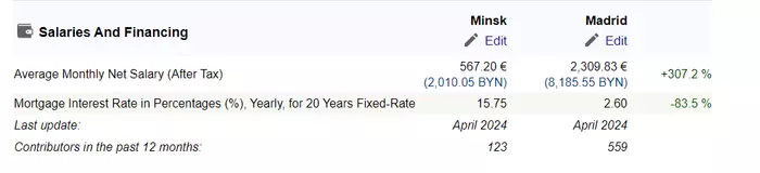 Тут моя ошибка - я не указал, среднюю зп того же работника супермаркета. В той же Меркадоне персоналу обещают 1,5к евро грязными, хз сколько там вычитают, но думаю 1,2к он точно на руки получает. Вот и сравнивать лучше не переводом валюты, а в сравнении с тем, сколько обычный человек может купить на свою зп мяса или молока. В Украине мясо хоть и дешевле в два раза, но и зп кассира будет раза в 3 меньше.