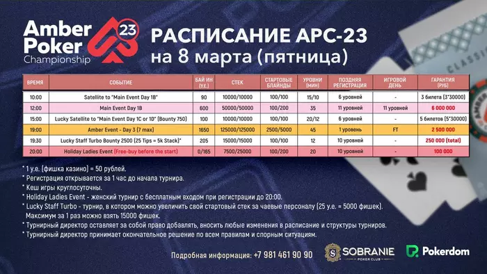 1) 10:00 Сателлит к турниру Main Event Day 1B.