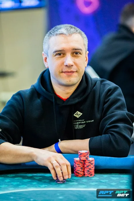 Вадим Мирошниченко (14к) запушил с малого блайнда в открытие Алексея Оржевикина (100к) , Алексей кол .
