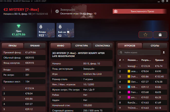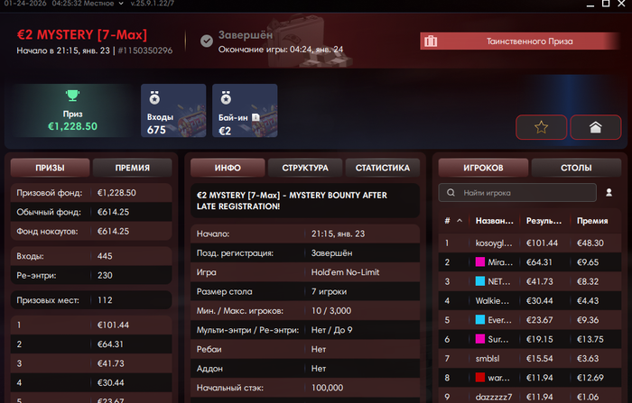 Было еще первое место в турнире за 4евро.