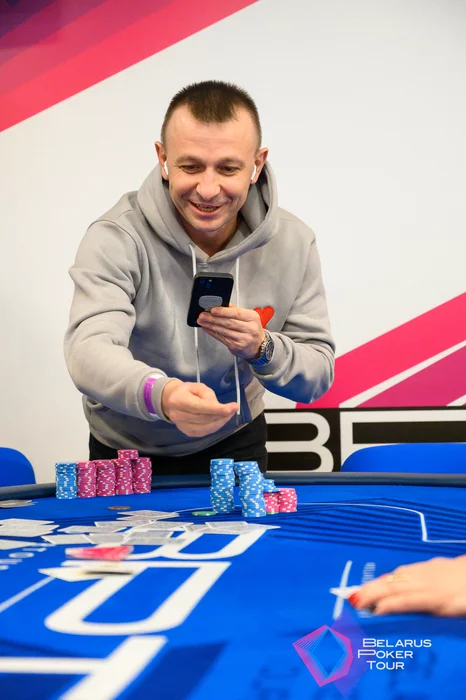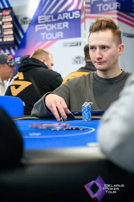 Алексей победил в этой раздаче и стал абсолютным чиплидером турнира к этой минуте.