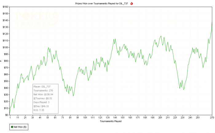 Так, подведем итоги двух дней моей безработной жизни... Первый день толком и не работал так как чувствовал себя еще не очень а вот второй ... уже начал работать почти на полную. Просто еще не привык, что не нужно никуда ити и ничего не делать, сижу дома и шпилю в покер (толком не разобрался как правильно планировать свой игровой день). Ну да ладно ближе к делу... ниже привожу график игры за эти 2 дня. Было много чего интересного... особенно меня кидал в разные стороны, дыспа творила что хотела, было такое что просто не было карты - досиживал до призов.