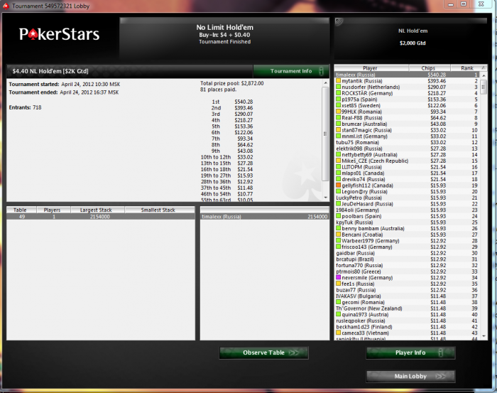 Первое ! Поздравляю... Приятно наверно обыграть 700 чел-к..?))