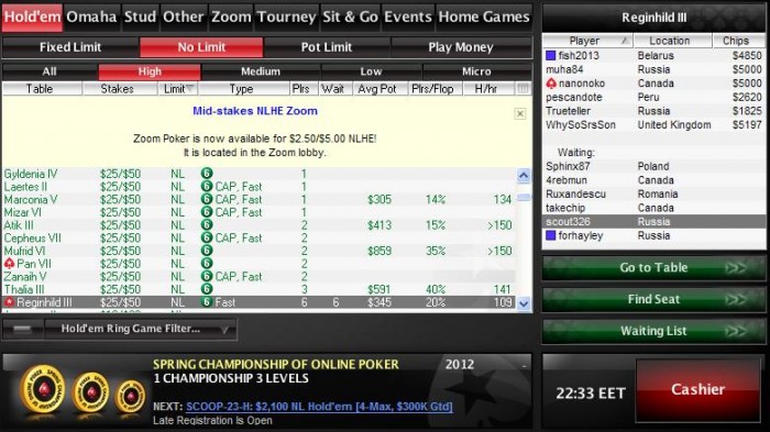 Poker Stars $2000+$100 No Limit Hold'em Tournament - t5000/t10000 Blinds + t1250 - 5 players -