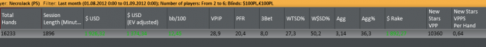 Ладно, парашюты, теннис...это все классные темы, но вроде у меня дневник покерный Подведу немного итоги августа. Из-за удачного заноса в турнире после моря я смог залезть на ПЛО100 и вроде бы вполне там закрепился. Вот график августа по сотке: