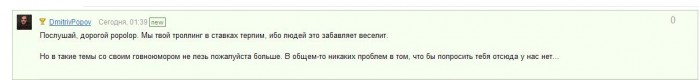 Да я вообще отношусь спокойно... Не хочу даже больше упоминать тот ресурс... Теперь будут читать только новости (которые уже давно опубликованы на других ресурсах) и бред наподобие такого: " Выиграл билет на сандей шторм...играю БИГ...уже аут..."