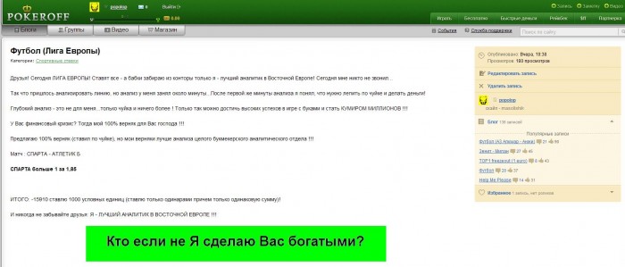 Могилу вырыли их АДМИНЫ...и это не мое личное мнение...а мнение многих других пользователей...не буду указывать этих людей, потому что это будет не корректно... Даже Шамиль перестал там постить (в радио-эфире он обьяснил почему)...посты конечно не совсем про покер, но они были на высоте однозначно по сравнению с другими...а после Шамиля там тишина и покой.... а он перестал там писать очень давно...и ничего не изменилось с тех времен....он в открытую кто заявил Попову, но как же САМ БОГ мог признать что он не прав и конечно же стоял на своем...в итоге остался один ГОСУХУМАН (король фриролов и штормов).....