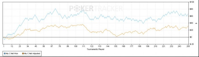 сыграно 255 ГТ ХА. ROI 7,43% Профит 66,30$ ЕВ приближается к Нет вину, но все равно пока перебираю, словил министрик на 100 туриков примено (просел байинов на 15, но вернулся назад), пока как то так. от графика отстаю, но в принципе я и не гонюсь сильно к цифре в 3000, сколько смогу столько сыграю. Но придется видимо как минимум троечках отыграть около 1000 туриков (планировал за 500 их проскочить)