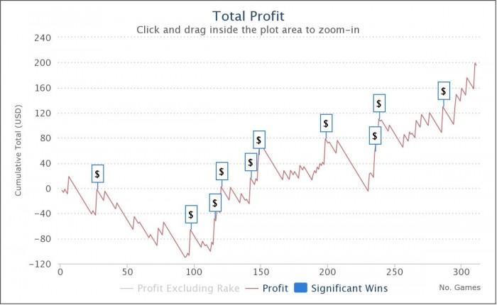 Читаю дневники игроков мтснг турбо. Для мотивации, конечно, есть смысл выкладывать графики за 100-500 турниров. Ну, и чтобы утвердится в этом обществе - тоже полезно выложить. Но, нужно помнить, что 500 турниров в этой дисциплине совсем не дистанция, сделовательно и профит не реальный. К примеру можно начать играть "в минус" 3000 турниров)))). Менять игру в процессе, и все такое... А, всему виной диспа. Просто мы должны помнить об этом. Сколько там рой для этих лимитов нормальный? 8-10%? Выходит, мы ждем за 600 турниров 210 бакинских сверху?
