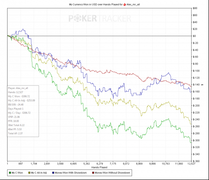 Вот за это мы и любим покер за эмоции!!! Это нормально что ты ненавидишь покер!! Крепись Алекс!! Я предлогаю тебе играть нл 5 востоновить немного банкролл и психологически раскрепоститься я сам знаю как тяжело в такие периоды, нужно терпеть и скрипя зубы биться головой об лед!!! Сделай выходной отдохни от покера полностью, соберись с мыслями!! Удачи!!!