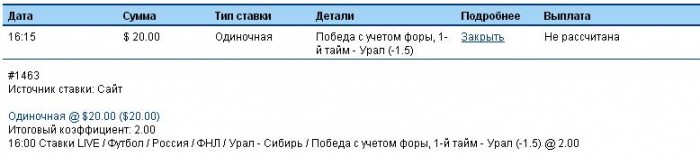 389. 15:00 Ставки LIVE / Футбол / Россия / Премьер-лига / Анжи - Алания 0-0/ Результат, 1-й тайм - Анжи (победа) @ 1.98 $ 20.00 -20