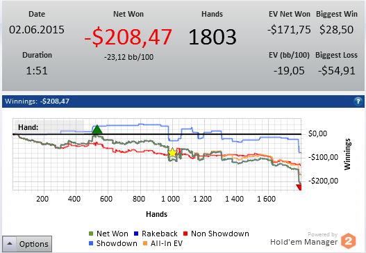 Утром состоялось последнее занятие с тренером в рамках купленного курса, разбирали раздачи - куча ошибок изза моего автопилота. В погоне за количеством раздач я совершенно перестал размышлять над раздачами и каждый спот под одну гребенку разыгрываю. Не надо так, в ближайшее время постараюсь искоренить эту проблему.