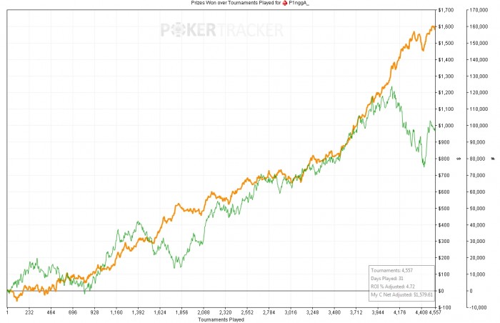 Решили поиграть с коллегой мтт ха в долях в качестве эксперимента, 50на50, до конца марта. Пока идем с перевыполнением плана. Стоит сказать, что я в них минусанул, по причине анлака, основной профит занес партнер. Надеюсь в феврале что-нибудь получится выиграть и мне.