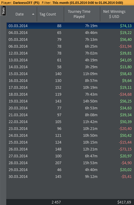 Теперь расчитываем сколько нужно отыграть игр, чтобы получить доход в 2к: 2000 / 0.28 = 7143 турнира. Делим на 30 = 240~ турниров в день без выходных.