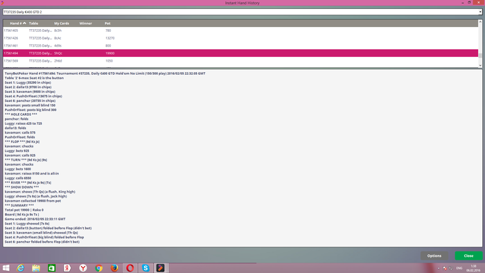 Ушел на перерыв в двух турнирах, в одном должен был собирать фантазию, при этом шел в зоне ИТМ, то есть собрав фантазию,я еще больше укреплял бы свои позиции. Я не отходил от ноутбука и сидел в наушниках.