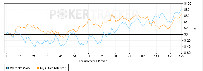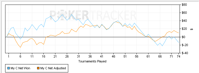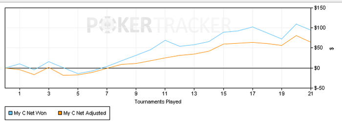 Сегодня откатал 93 турнира. Акцент дня был сделан на 15ки. Т.е. я быстренько отбил n-ое количество 7рок, чтобы потом заняться непосредственно 15ками. Но начало сразу было неудачным, ушел в -109$ - это пока что рекорд на моей памяти. Самая фишка, что подсирали в основном 7ки. Что не раздача, то кулер. Вот графон 7рок (не полный, но основная часть зарыта именно здесь)