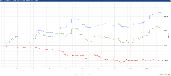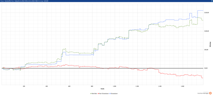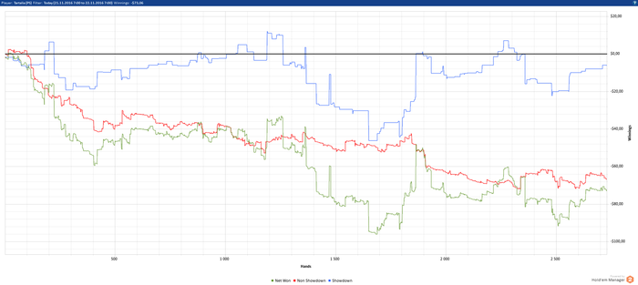 А...с красной беда на рег столах началась...надо будет пересмотреть чего и как. Но если говорит о сегодня - мне одних стрит-флэш дро не закрылось 3 штуки. А как круто я во флопы в 3бет банках попадал...вообще загляденье. Хотя и лажа есть.
