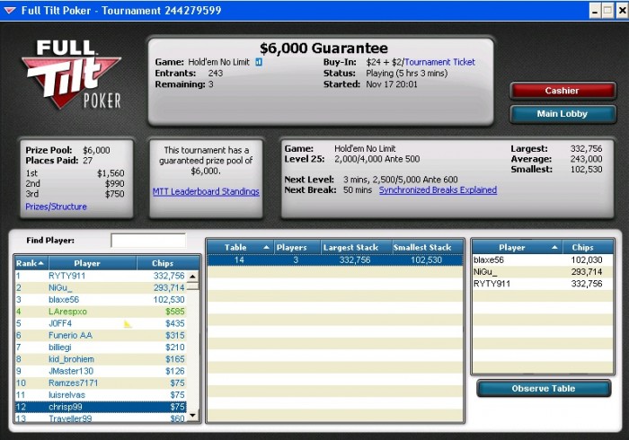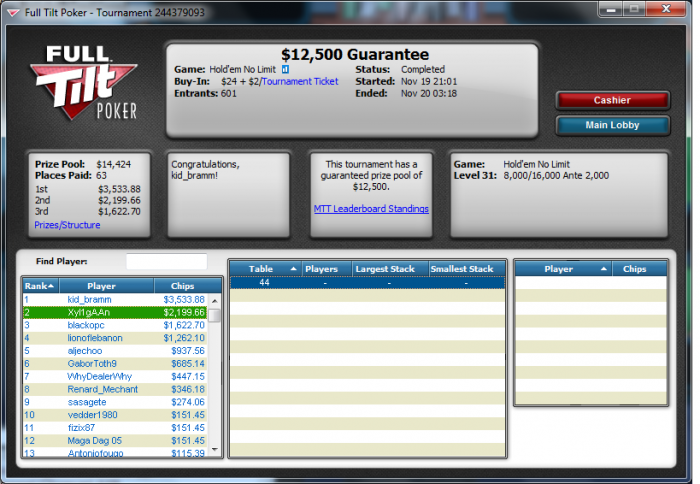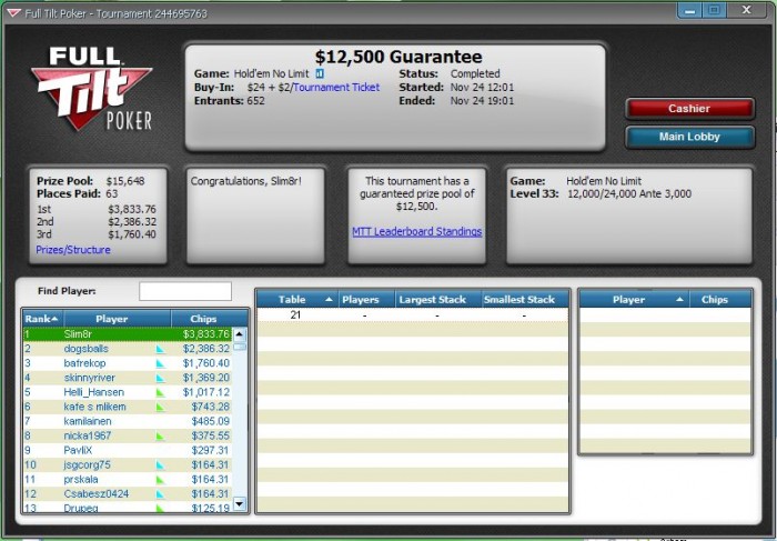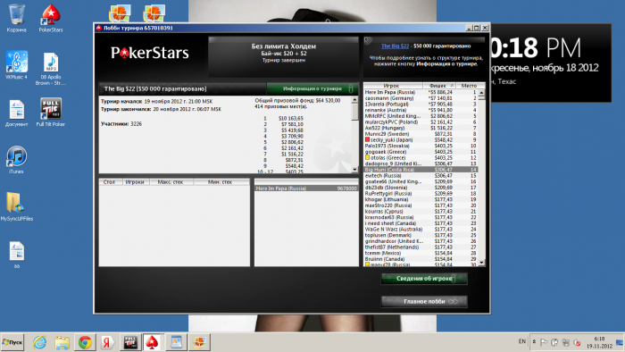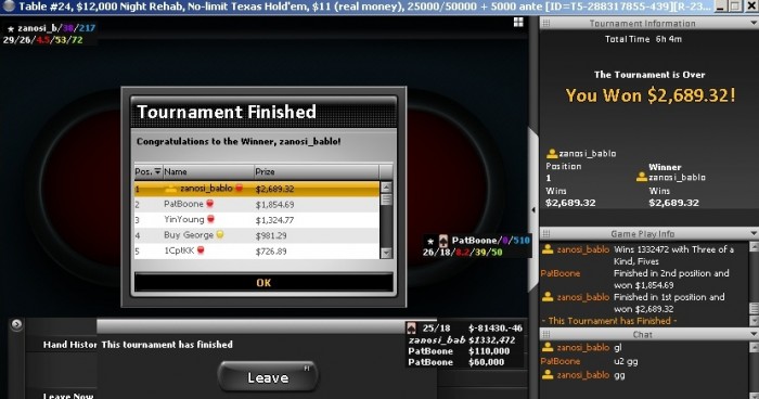 Ха был просто вс отъехавшего фиша,ну просто нереально его все руки:сеты,флеши,стриты,2пары,были доминированны моим,абсолютно все руки оплачены,т.к мне было с чем тоже :(( ГГ!