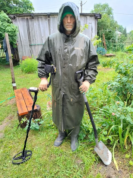 Спал аж до 9 часов, смотрю льёт небольшой! Одел плащ и сапоги-пойду думаю капну-найду ченить и повышу себе настроение!