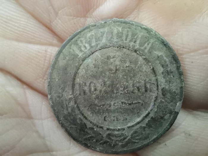 Находка тоже кажется субботняя-уже не помню! В самом конце копа-отличный сигнал, ровно 93-сразу ясно-цари-оказалась 3 копейки 1877 года-годится!! Под грязью думаю хороший сохран должен быть-зимой узнаем! Так то плохо видно-но чую очистится!