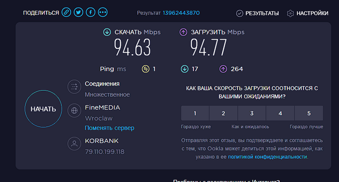 Добрый день, переехал с РБ в Польшу и не могу зайти на winamax пишет что плохой конект с интернетом, скорость у интеренета такая как на фото, ему действительно мало интеренета или дело может быть в провайдере? Ps Pses открывается нормально и работает тоже нормально