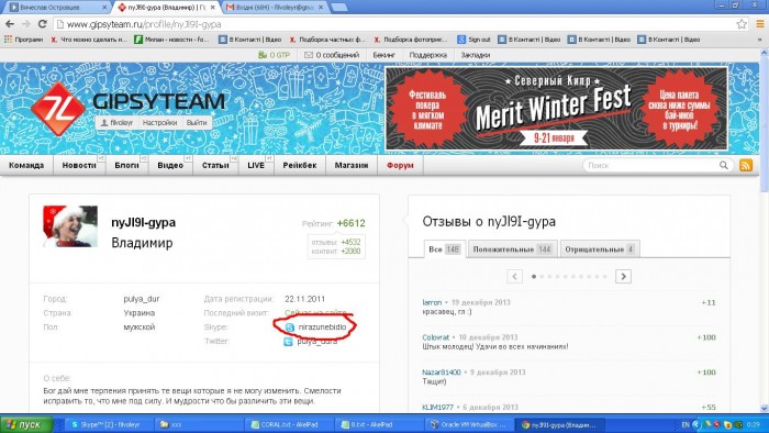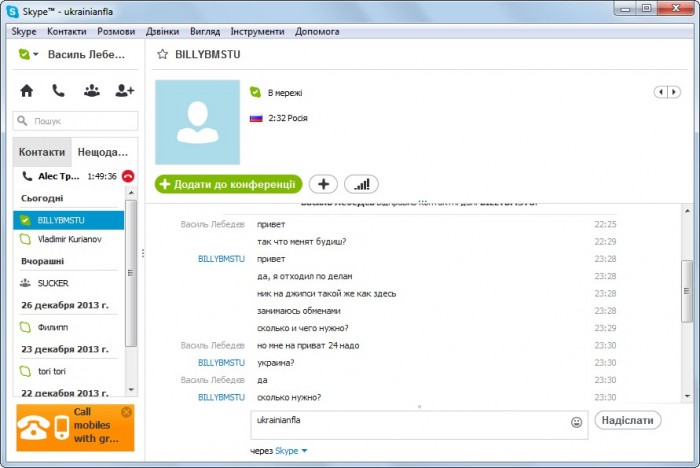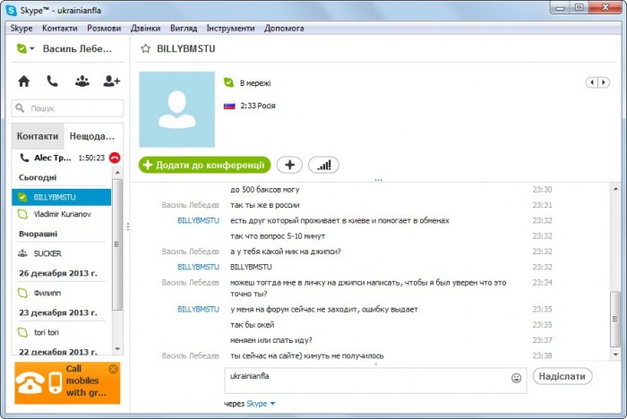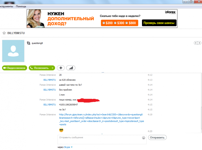 еще заметьте что в момент когда он мне написал в прифиле не был указан скайп, а после кидка появился но не тот что писал мне...