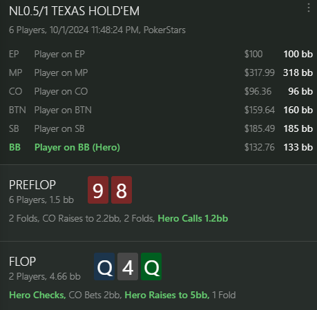 Конечно, на досках Axx или Kxx без позиции мне будет сложно, и я понимаю, что мои скрины выглядят провокационно. Но на самом деле я такое чек-рейжу только против совсем отбитых, у которых без топ-пары всегда фолд. В основном же я рейжу "свои" флопы, и большинство тернов на этих досках тоже будут "моими".