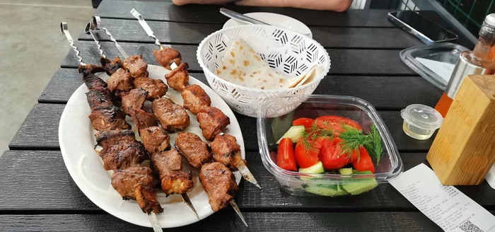Это мы в парке Астана зашли в кафе "Шашлычок". Из говядины шашлык средненький, а из утки просто офигенный 😋