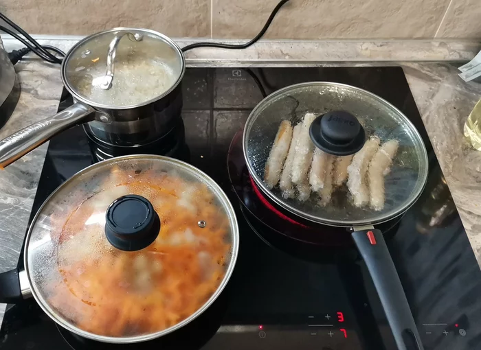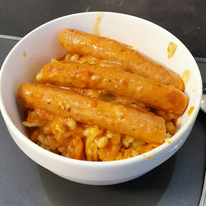 Второе - колбаски в смелеаде Здесь всё проще простого. Купили замороженные колбаски для жарки. Вывалил их на сковороду, обжарил немного, а потом сделал смесь всего, что нашёл в холодильнике: сметана, кетчуп Лечо махеевский и соус аджика. Вот по начальным буквам этих ингредиентов и сложилось такое замечательное слово: смелеад Далее, заливаем колбаски смелеадом, убавляем огонь, накрываем крышкой, и пусть они тушатся. Кстати, во второй раз я обленился до того, что по очереди в сковороде полил колбаски сметаной, лечо и аджикой, а они там внутри сами перемешались