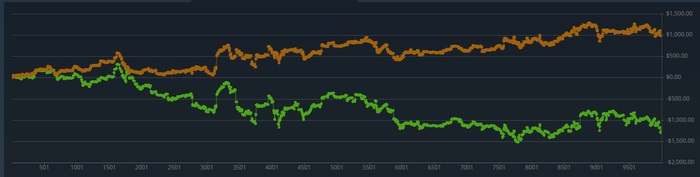 NotAHero @ 02.05.23besh, дефолтная ситуация для гг,к сожалению. не помню,когда в последний раз на гг за месяц был перебор по зелёной. либо в ноль,либо недобор 10-30би лимита. 100-150к рук в среднем. если аппает,то максимум на 20-40к рук,а если даунстрик,то 100к это вообще норма. может я такой везучий,хз