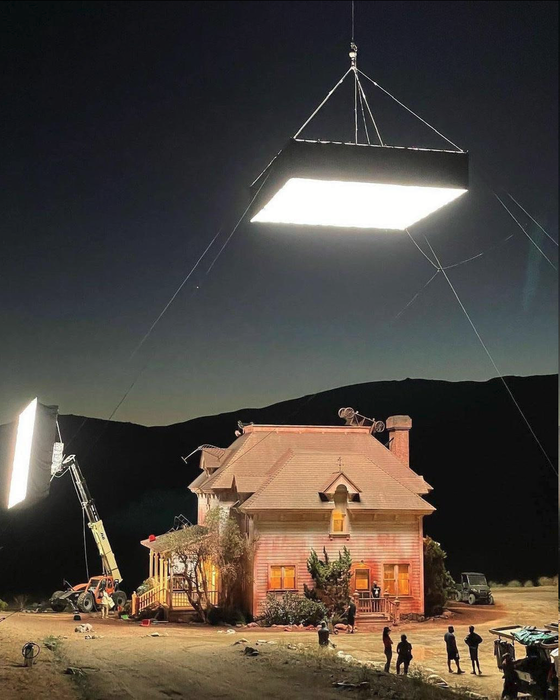 Фотография со съемок показывает масштаб подхода в том числе к свету - он там тоже уникальный: