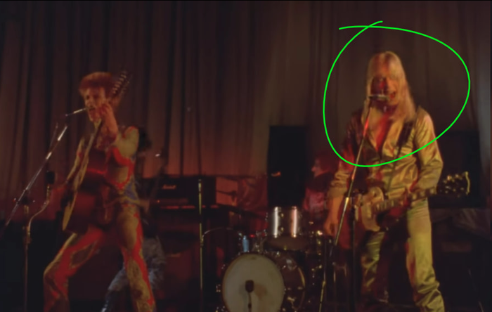 Автор гитарной партии Мик Ронсон вообще мало популярен, но кроме песен с Боуи, он был еще и продюсером альбома Transformer Лу Рида (вместе с Боуи), на котором все его хиты: Perfect Day, Datellite of Love и Walk on the Wild Side. Ронсон еще и играл там на всем - на гитаре и пианино, и бэк-вокалы его.